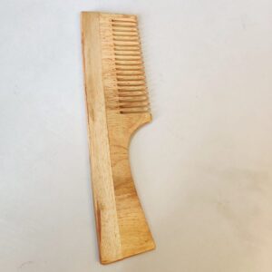 The Neem Wooden Comb – Handle Comb is a natural and eco-friendly hair care accessory designed to provide a gentle and soothing experience for your scalp and hair. Crafted from high-quality neem wood, this comb not only helps detangle and style your hair but also offers several health benefits thanks to the natural properties of neem. Its ergonomic handle ensures a comfortable grip, making it easy to use and control while combing.
